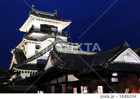 夜空に浮かぶ高知城天守閣と本殿 秋のお城祭りにて