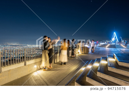 星と街の灯りが輝く藻岩山の山頂展望台からの夜景|北海道札幌市
