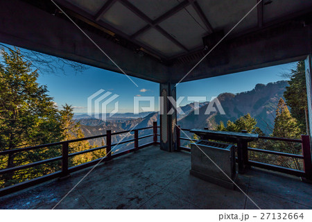 埼玉県秩父市の三峯神社の遥拝殿(ようはいでん)から妙法ヶ岳方面を見る