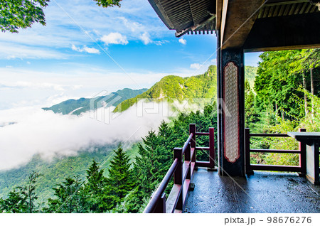 埼玉県秩父市の三峯神社の遥拝殿(ようはいでん)から妙法ヶ岳方面を見る