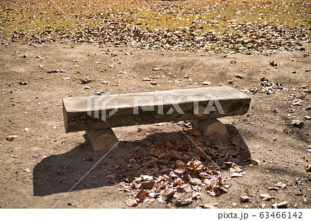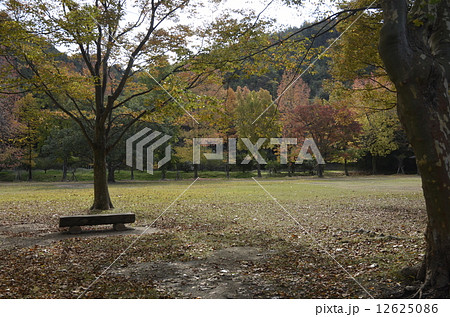 小鳥の森(三徳園) 晩秋の公園の木のベンチ2 岡山県岡山市東区