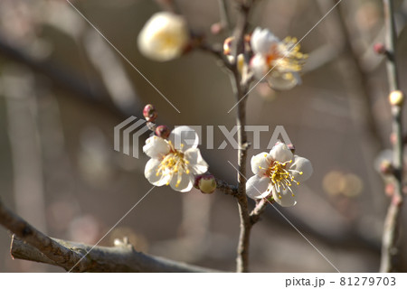 小鳥の森(三徳園)の梅園に咲いている白梅のクローズアップ2 岡山県岡山市東区