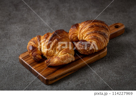 まな板にのせた クロワッサン フランスのパン