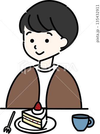 ケーキの前に座る男性
