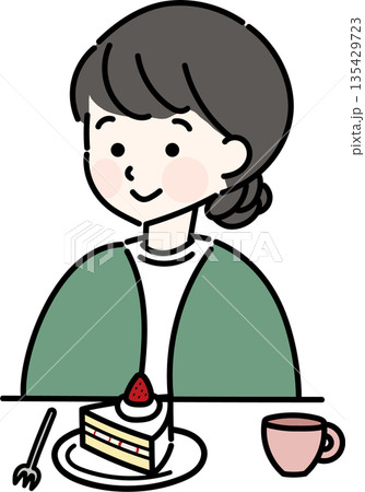 ケーキの前に座る女性