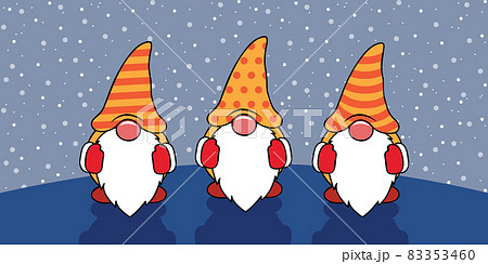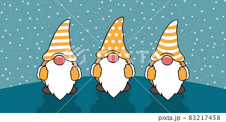 three cute christmas gnomes with funny caps