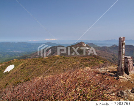 春の那須岳からのパノラマ眺望 朝日岳山頂を望む