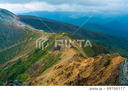 栃木県那須町の那須岳 茶臼岳付近からみた朝日岳