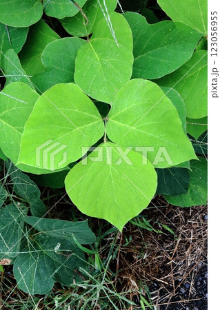自然 植物 アマミヅタ、奄美大島から沖縄にかけて自生する蔓性植物。壁面緑化にも利用されているそうです