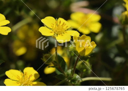 自然 植物 キジムシロ、初夏に咲くヘビイチゴに似た花。鮮やかな黄色が美しい