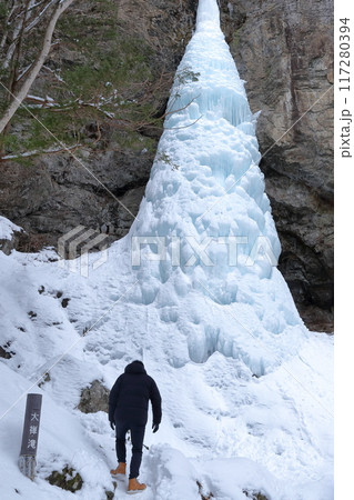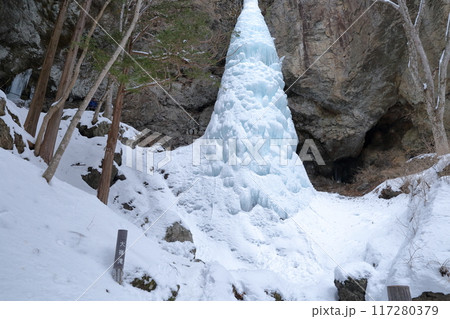 大禅の滝 長野県 北相木村)真冬の氷瀑風景