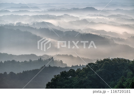 三王山自然公園の雲海、常陸大宮、茨城県