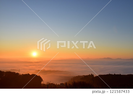 茨城県常陸大宮市 三王山自然公園の冬の雲海の朝