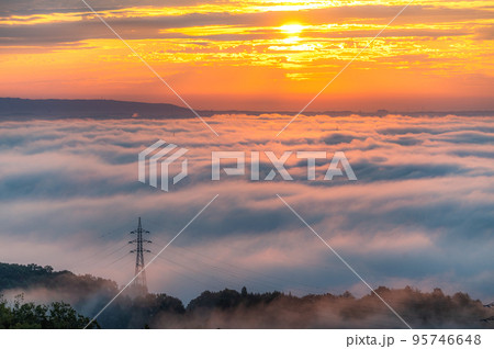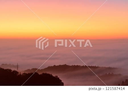 茨城県常陸大宮市 三王山自然公園の早朝の雲海