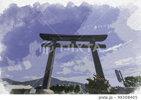 水彩画風 大神神社 大鳥居 奈良県桜井市