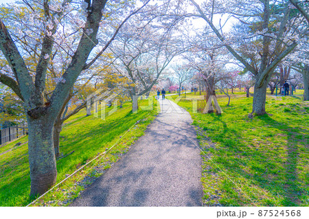 風光明媚の地で春を告げる桜前線の公園,仙台市民に親しまれている三神峯公園満開のソメイヨシノ観光地