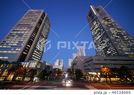 横浜みなとみらい21の街並み夜景 (神奈川県横浜市) 2019年9月