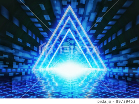 Futuristic Neon Triangle Corridor 3d render illustration
