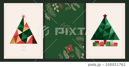 Christmas vector triangle bunting flags in green and red colors for invitations and greeting cards