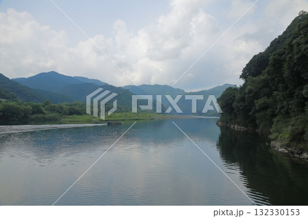 【高知県】快晴下の四万十川と屋形船