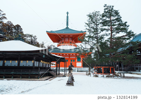 雪の高野山 壇上伽藍 根本大塔 和歌山県伊都郡高野町