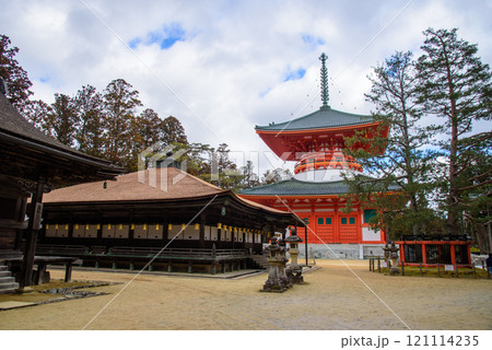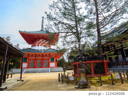 高野山 三鈷の松と根本大塔 壇上伽藍 和歌山県