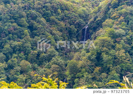三階の滝と紅葉した蔵王の景色 宮城県蔵王町