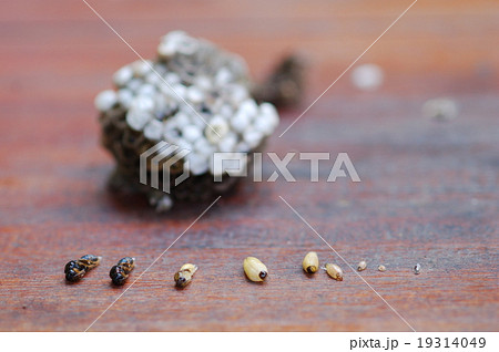 蜂の幼虫を順に並べた
