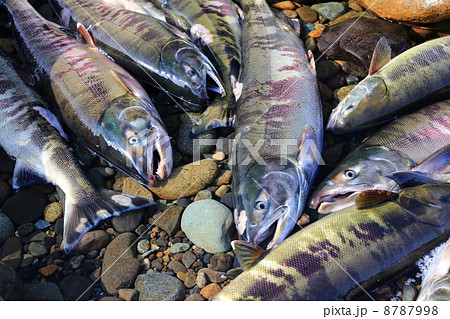 サケ釣り 鮭釣り アキアジ、オホーツク海 秋の風物詩