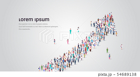 people crowd gathering in shape of financial arrow up symbol social media community successful