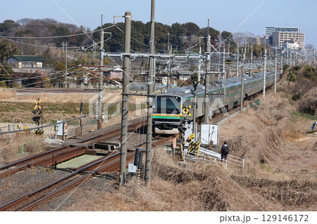 高架化に向けた線路切替区間を快走する… 特急スペーシア