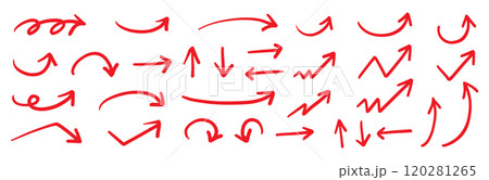 シンプルなペンの手書きの矢印セット ベクター 赤