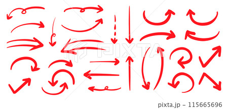 シンプルなペンの手書きの矢印セット ベクター 赤