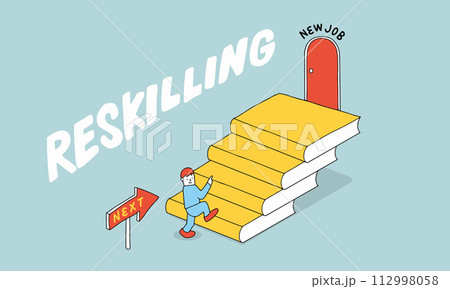 リスキリング これまでの経験やスキルを活かして新たな職業に挑戦するキャリアステップイメージ