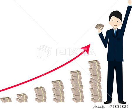 上昇する札束の棒グラフとビジネスマン