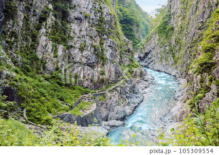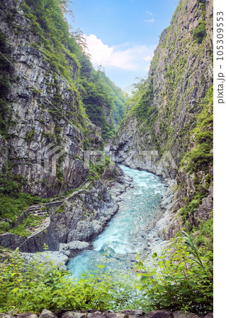 清津川 清津峡入口付近の景色 景色 新緑のころ 新潟県十日町市