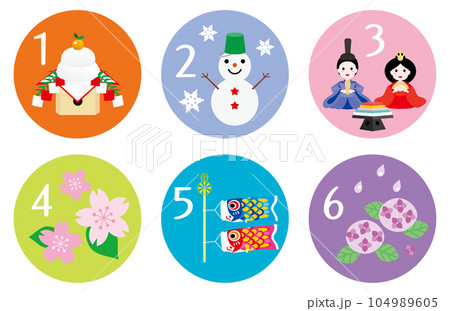 幼稚園・保育園向け|上半期の年間行事 水彩アイコンセット(入学式・検診・遠足・七夕・夏祭り ほか)