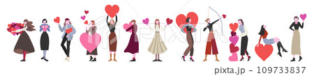 ハートモチーフと12星座をイメージしたスタイリッシュな秋冬服の女性のイラスト。