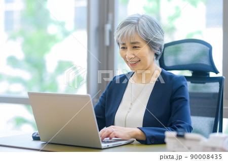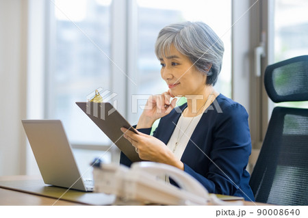 オフィスでデスクワークするシニア ビジネスウーマン