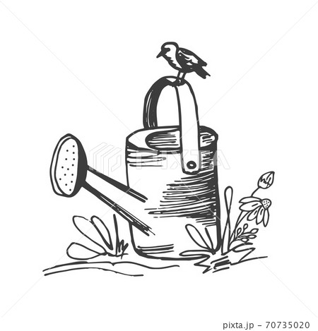 Sketch watering can for the garden. Watering can isolated on a black background. Vector