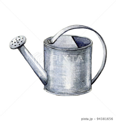 Hand-painted watercolor painting of a watering can for use as an illustration