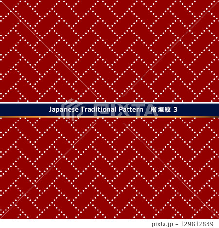 日本の伝統的な紋様素材。ドットの線でできた檜垣紋のシームレスな和風デザイン素材。