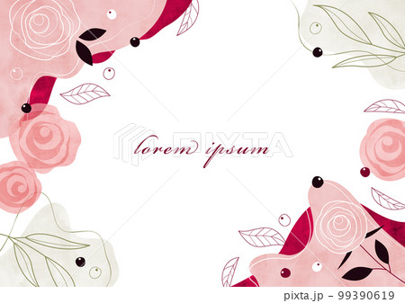 バラの花の背景フレーム ナチュラルな植物線画イラスト(ピンク)