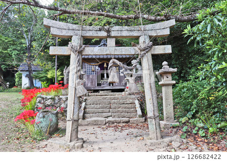 山口市の鰐鳴八幡宮境内にある彼岸花咲く柊社