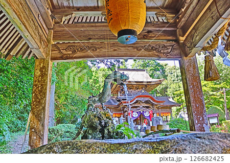 山口市の鰐鳴八幡宮手水舎と楼門形式の拝殿