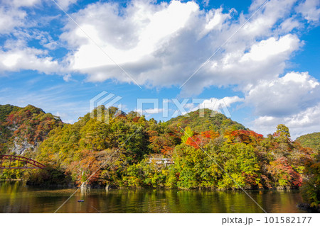 国定公園帝釈峡天然記念物雄橋の紅葉