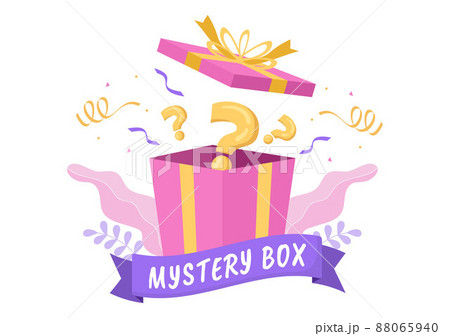 Mystery Gift Box with Cardboard Box Open Inside with a Question Mark, Lucky Gift or Other Surprise in Flat Cartoon Style Illustration