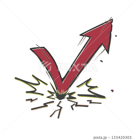 不屈のV字回復矢印イラスト|回復・復活・業績改善を表す素材