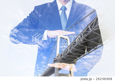 ビジネスパーソンと橋 ダブルエクスポージャー