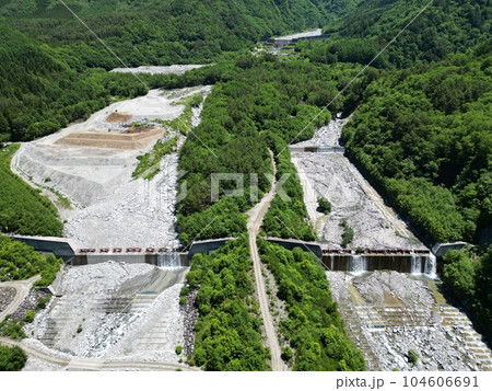 【空撮】滑川第1砂防堰堤と砂防ダム群(長野県上松町)